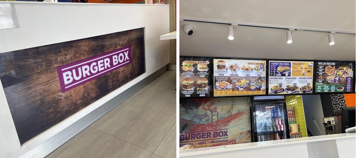 Tried Burger Box for the first time, and wont be my last. We were served by a very polite and friendly brother who made the visit more enjoyable. We got a peri wrap meal with a No3 Milkshake and a lamb steak on chips with no10 Milkshake. The peri wrap was perfected with succulent tender chicken with a nice charcoal taste. Tortilla was soft and the sauces complemented the chicken perfectly. Lamb steak was very flavourful and the chips were nice and crispy. Fresh salad in the box with a tub of cheese sauce. The portion looked a little small but taste was on point. Sauces supplied were excellent including the unusual pink one which tasted great. No3 Milkshake was top drawer, i highly recommend you give it a try.